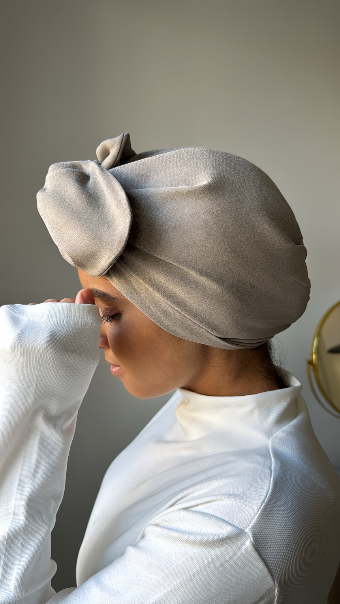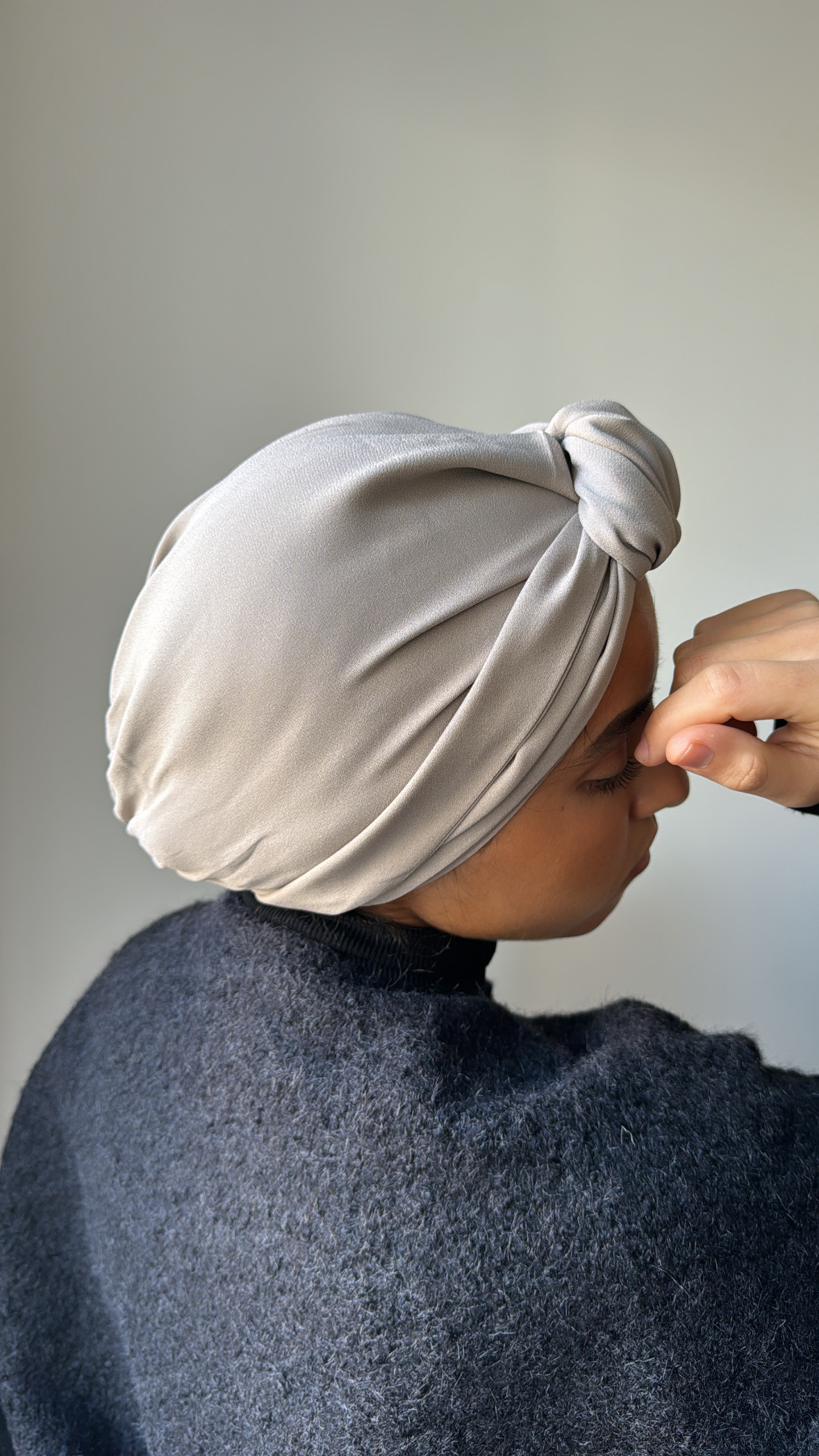 Apportez élégance et confort à votre quotidien avec ce turban en crêpe fluide gris perle, une matière légère, douce et agréable à porter. Son tombé naturel assure un rendu raffiné tout en offrant un excellent maintien.