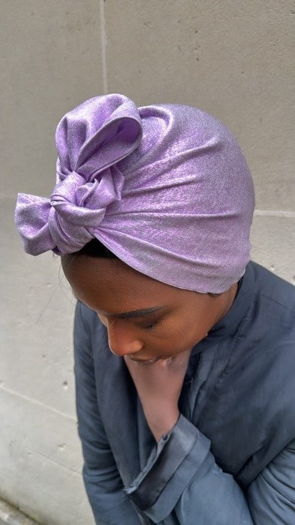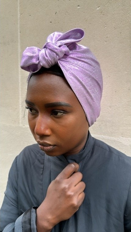 Turban Basic de couleur parme brillant avec de jolis reflets, il apportera à votre tenue une touche de sophistication , idéal pour vos occasions,soirée ,événement.
