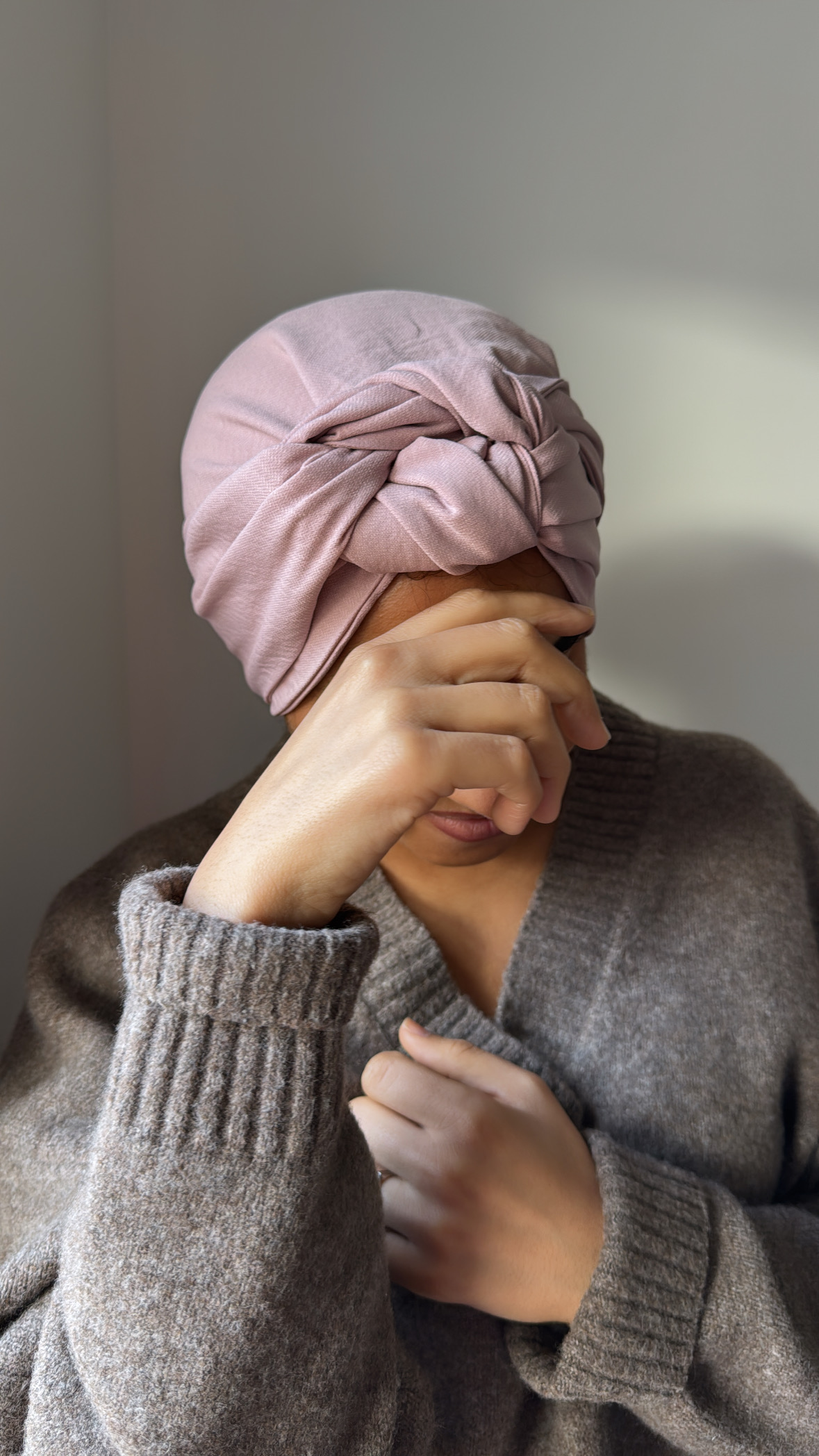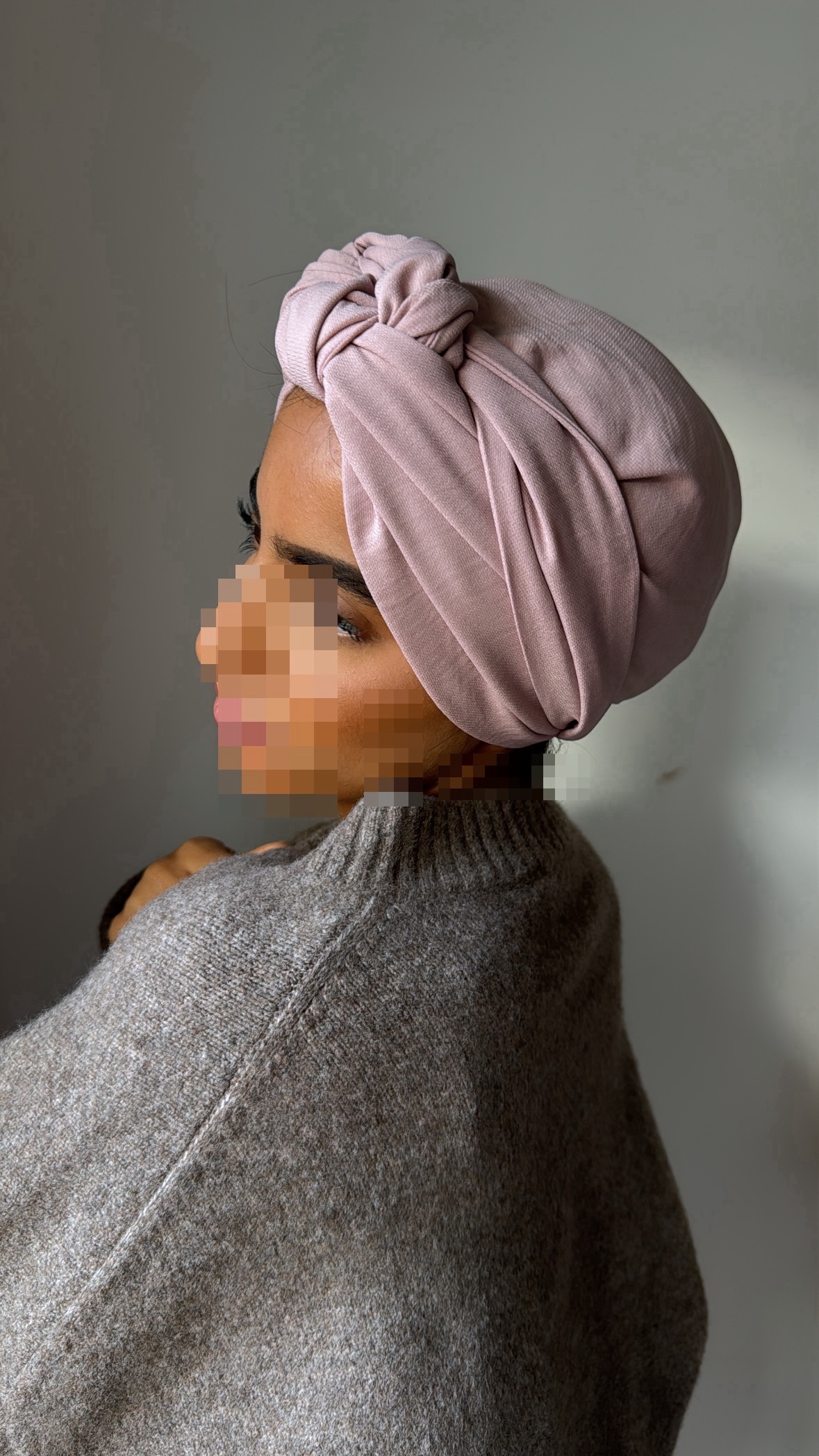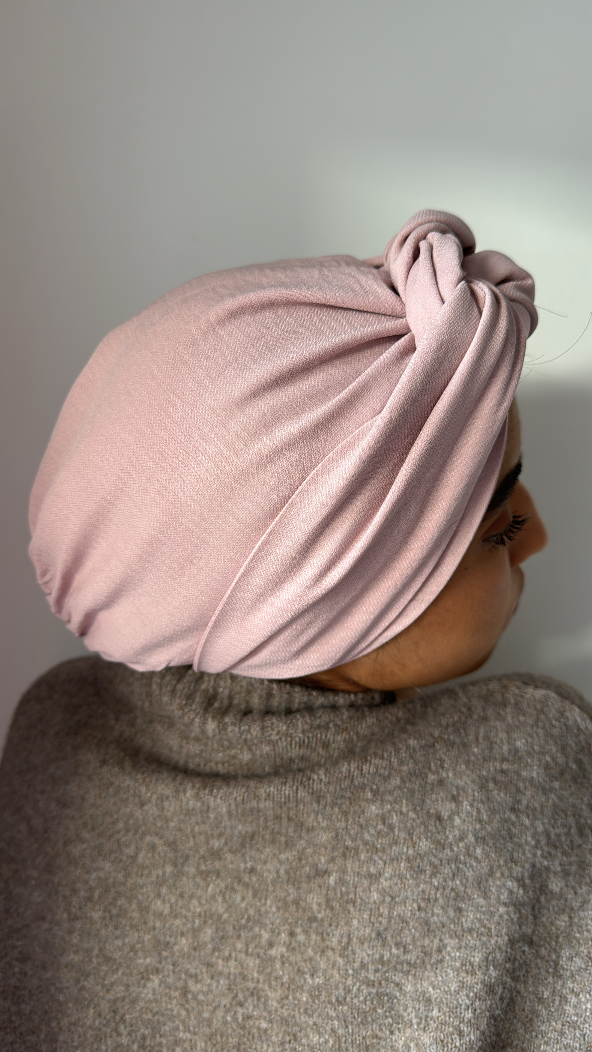 Turban en crêpe rose poudré – Élégance douce et féminine