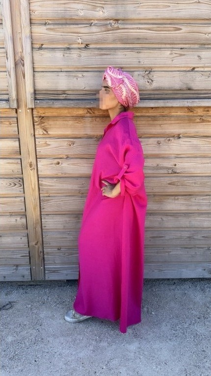 Associez ce turban à un ensemble blanc, beige ou nude pour faire ressortir ses touches de fuchsia, ou jouez le contraste avec des accessoires dorés pour un look estival et glamour.