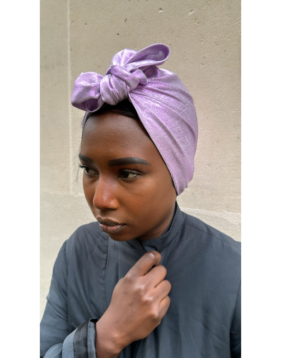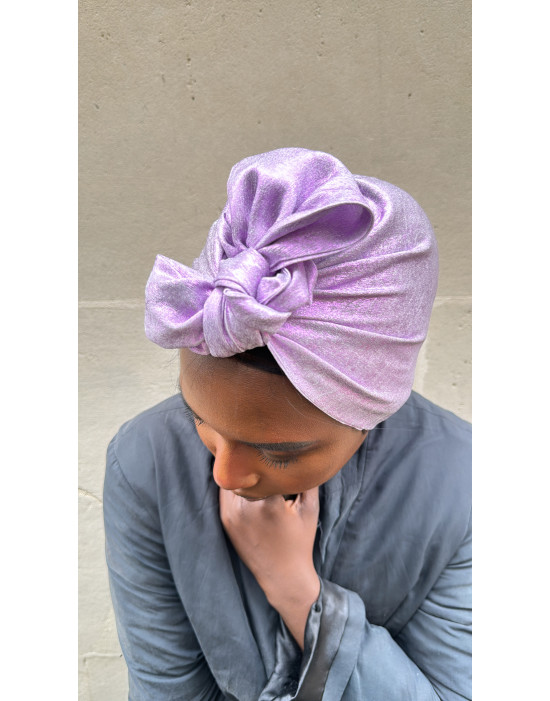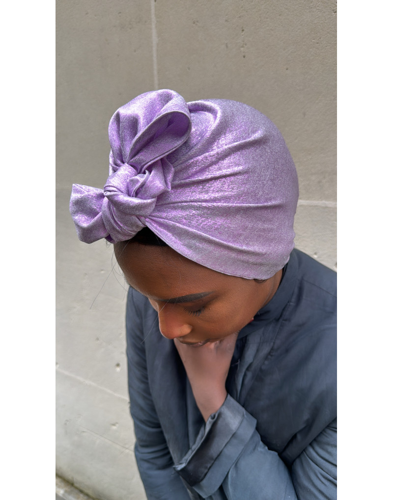 Turban Basic de couleur parme brillant avec de jolis reflets, il apportera à votre tenue une touche de sophistication , idéal pour vos occasions,soirée ,événement.