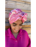 Ce turban fuchsia se porte aussi bien avec des tenues sobres pour réveiller un look minimaliste, qu’avec des imprimés pour un style assumé et plein de caractère. Parfait pour un look estival pétillant et élégant.