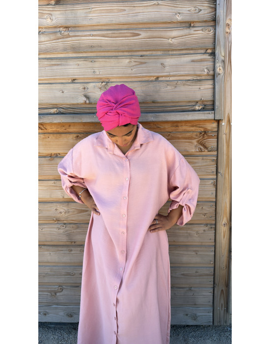 Affirmez votre style avec ce turban en lin tissé rose fuchsia, une teinte éclatante qui illumine le visage et dynamise toutes vos tenues. Sa matière en lin légèrement épaisse offre une excellente tenue et un joli volume une fois noué, tout en restant respirante et agréable à porter même en été.