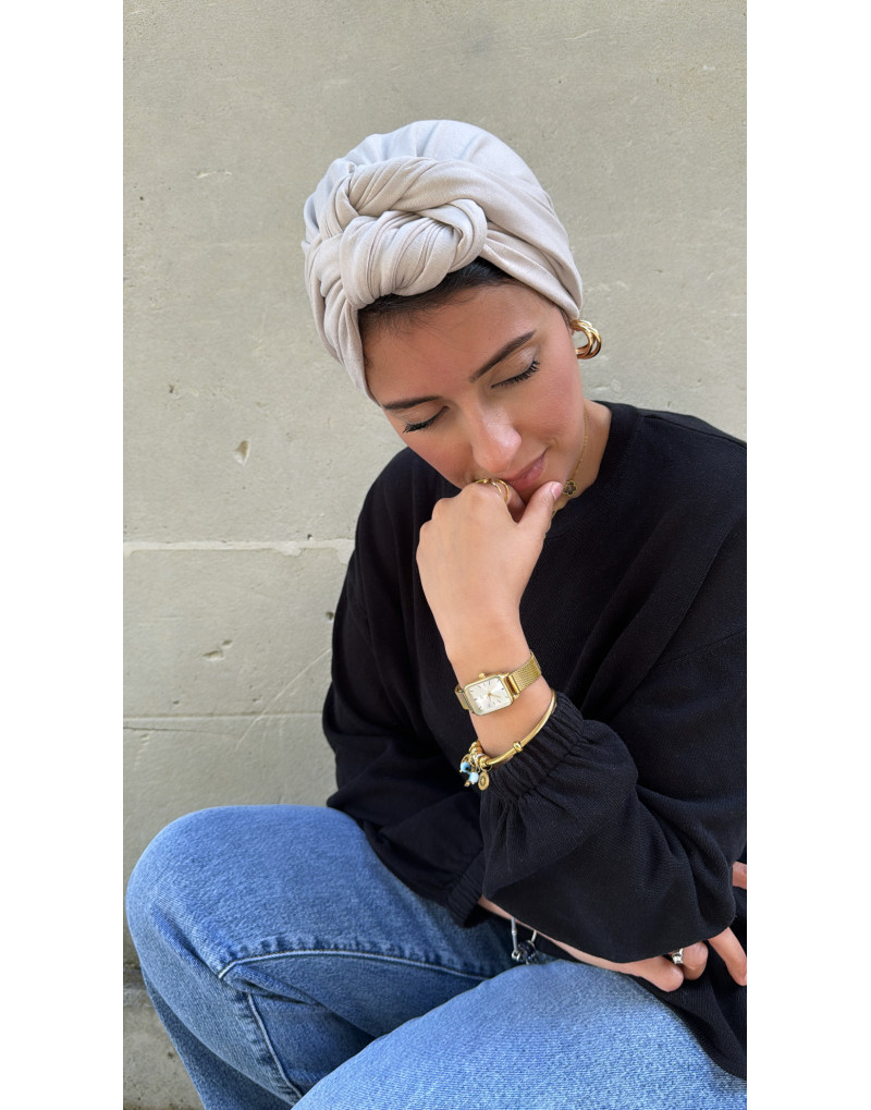 Turban Bérénice en jersey coton qui existe en BASIC et en TWIST (tiges intégérées)