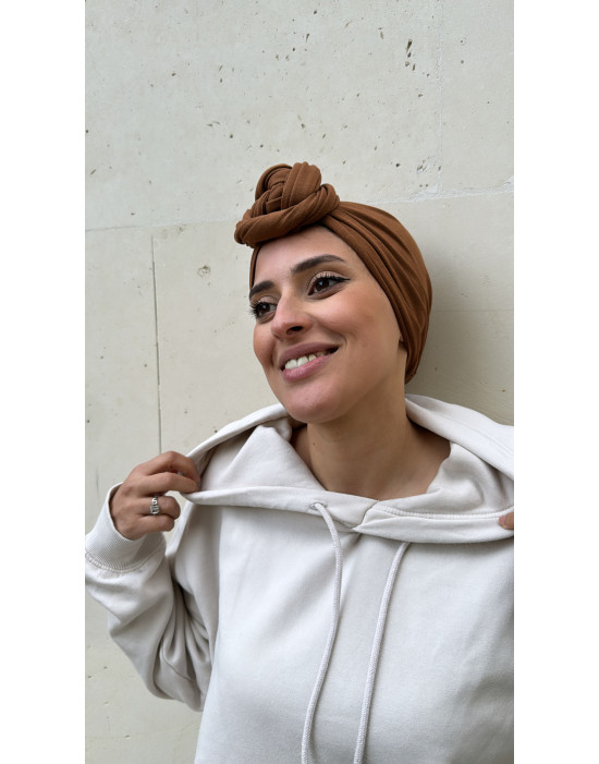 Ce turban en jersey de coton cognac se distingue par sa douceur et son confort incomparable. Sa matière souple, respirante et extensible épouse parfaitement la tête pour un port agréable tout au long de la journée. Sa teinte cognac, chaleureuse et sophistiquée, apporte une touche d’élégance intemporelle à vos tenues, qu’elles soient sobres ou colorées.