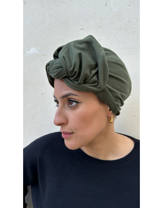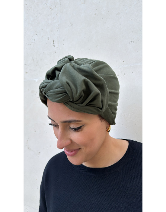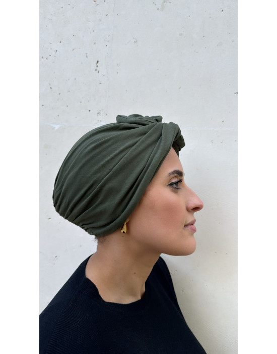 Ce turban en jersey de coton kaki associe élégance décontractée et confort absolu. Confectionné dans un tissu doux, souple et extensible, il épouse naturellement la tête tout en offrant une agréable sensation de légèreté. Sa couleur kaki, à la fois tendance et intemporelle, s’accorde facilement avec toutes les tenues, du style casual au plus raffiné.